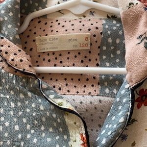 Zara pajama style top+ bottom wide leg pant set! Adorable flower print very sophisticated ! Bottoms are mainly navy color top light creamy pink and pastel blue grey! Runs true to size will for a 7/8 ! In perfect condition no stone no rips! Perfect all year round!
