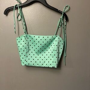 Zara shirt - light green with navy polka dots tie strap cropped top