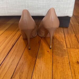 Nude, colored high, heeled pump, with pointed toe, it has a sleek and classic design, making it a versatile choice for formal or professional outfits