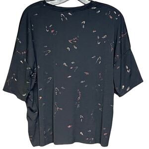 Zara short sleeve shirt black tee sparkly red metallic flowy loose fit size L