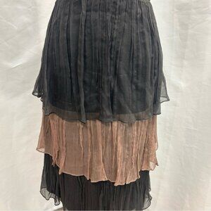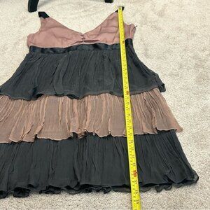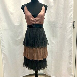 Zara silk satin V-neck sleeveless pleated tiered layered dress Sz L pink gray