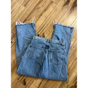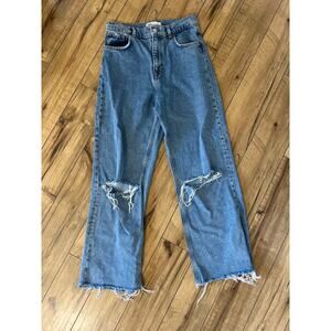 Zara size 6 The 90’s Full Length jeans in great condition. Destroyed look with a raw hem. Waist measures 14 1/2” across. Inseam is 29” and rise is 12 1/2”.