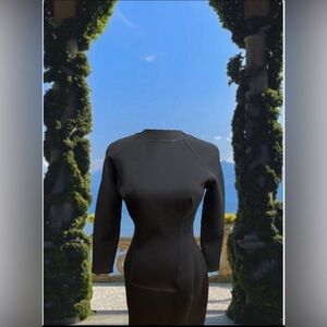 Elegant black dress with long sleeves. Perfect for any occasion. Simple and stylish design.