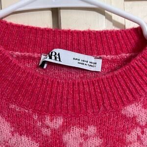 Zara size small bright pink with lighter pink floral fuzzy cropped sweater in excellent condition. Super soft. Measures 23 1/2” from armpit to armpit and 18” long.