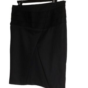 Zara skirt M horizontal pleat side zipper slant front pleat pencil style black