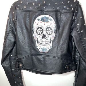 XS skull embroidered Zara women’s studded motorcycle jacket with rhinestones