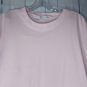 Zara soft pale Pink Boxy Relaxed T-shirt with Short Sleeves