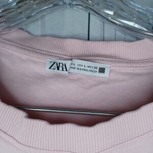 Zara soft pale pink t-shirt features a boxy and relaxed style, crewneck wide arm openings