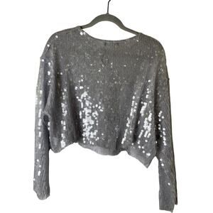 Perfect party top Wear with jeans or a skirt! Zara grey sequin top. Slightly cropped--covers the stomach but hits at waist. Super versatile