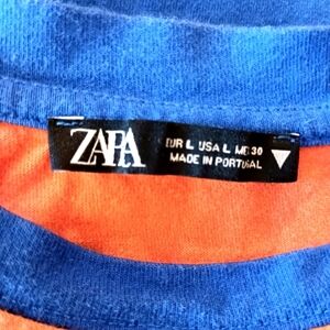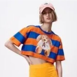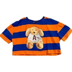 Zara stripe cropped blue orange tshirt with bear. Sz Lg.