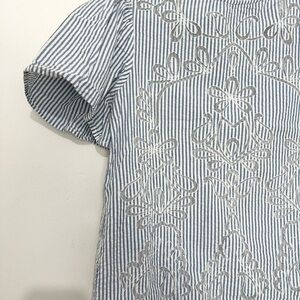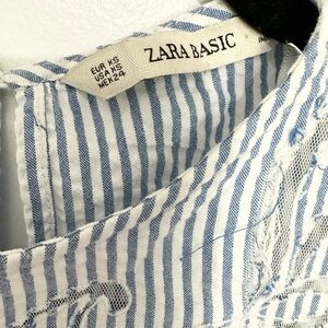 Zara striped blue blouse with lace floral cutout details mesh pin stripe size XS