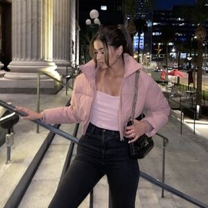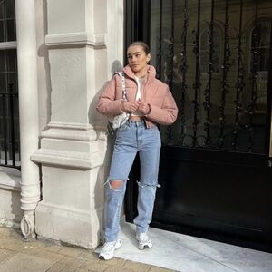 Zara sz. M Matte Pink Crop Puffer Jacket Oversized BLOGGER FAVORITE Coat Zip Up