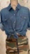 Zara sz M, light denim colored button-down, cropped blouse.