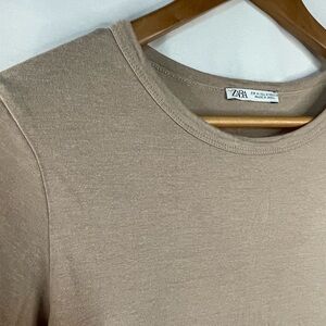 Zara tan knit crew neck Tshirt. Light weight and soft. Womens size medium.