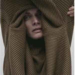 New without tag. Oversized ribbed knit sweater in beautiful taupe color. Mock-/turtleneck. Flat measurements: