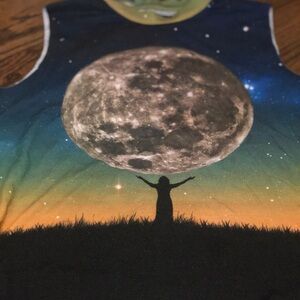 This super stylish big moon muscle tank is a guaranteed head turner. This tank helps pay tribute to the night sky, its many stars, and the big beautiful moon that lights up our life each and every evening.