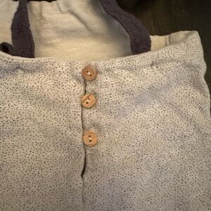 Preowned but in excellent condition. This is super cute in person. It has ruffled straps and three buttons in the front.