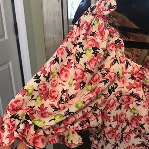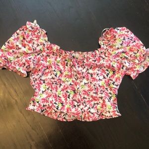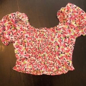 Size smal Zara crop top, pink rose peeing and little ruffles on sleeve and neck trip make this a perfect date night top! Size small never worn.