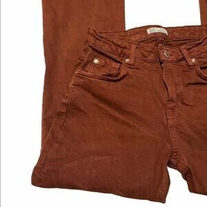 Zara trf Collection Frayed Denim flare crop jean orange red Sz 4