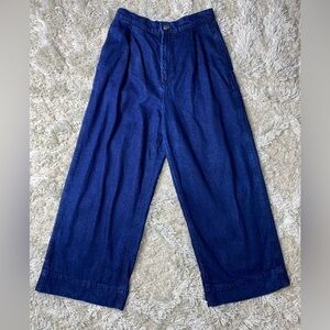 Zara trf Denim Collection Wide Leg Paper Bag Waist Jeans Size 4 100% Cotton