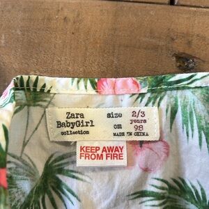 White with tropical floral and leaf print Button front with rope tie waist Flutter sleeve No holes or stains 2-3 years