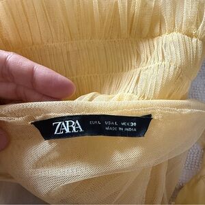 Zara tulle yellow midi ruffle dress Large
