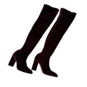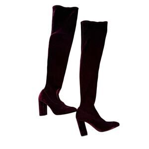 Zara velvet over the knee burgundy heeled boots EU 38 / US 7.5