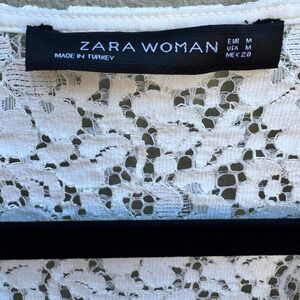 Elevated and romantic, this Zara Woman off-white lace blouse is designed with a delicate floral pattern, a flattering V-neckline, and long boho-inspired bell sleeves. The sheer fabric creates a soft, ethereal feel, while the intricate lace adds timeless charm. Whether styled casually with jeans or dressed up with a skirt and heels, this top is versatile and chic. Perfect for both everyday wear and special occasions.
