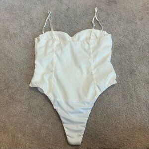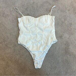 Zara white linen blend ruched sweetheart neck spaghetti strap corset bodysuit XL