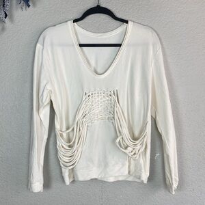 Zara top. Solid white. Macrame like woven detailing. Unique statement piece. Long sleeve. Soft
