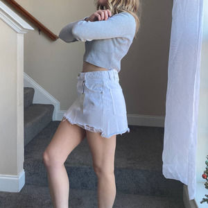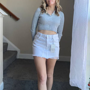 Zara white mid rise disressed mini skirt, size Medium (NWT)