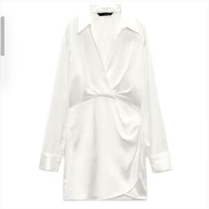 Zara white satin shirt dress