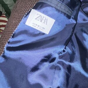 Zara windowpane navy big boys suit sz 11/12 excellent condition