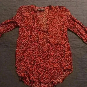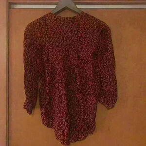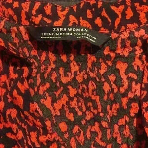 Zara woman red leopard print v neck blouse 100% Viscose Small