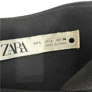 Zara women’s Mock Neck Black Ruched Long Sleeve Zipper Back Blouse Size Large