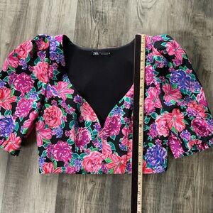Zara womens Multicolor Puff Sleeve Crop Top Blouse XS