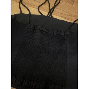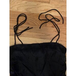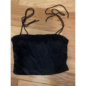 Zara, women's black satin cropped, tied sleeveless elastic back top size Medium