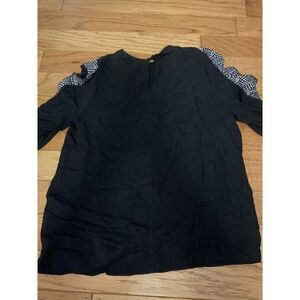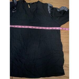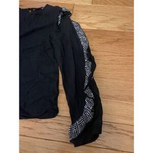 Zara, women's black with grey ruffled long sleeve top size medium