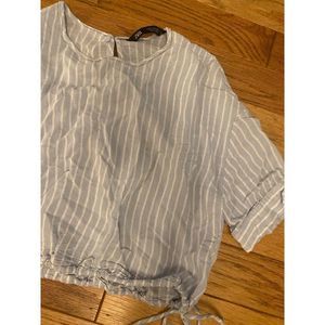 Zara, women's blue striped short sleeve cropped shirt with side ties size small