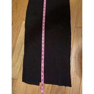 Zara, women's brown ribbed bodycon strapless midi dress with high slit back sz M