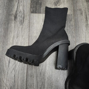 Zara women's chunky heeled boots size 39 8 black socks Y2K 90s