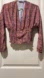 Zara womens deep V neck elastic trim print crop top blouse long sleeves size XS