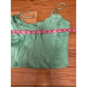 Zara, women's green satin fitted corset like cropped, side zip tank size XS