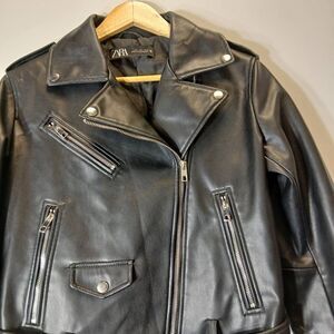 Zara womens large biker jacket leather black