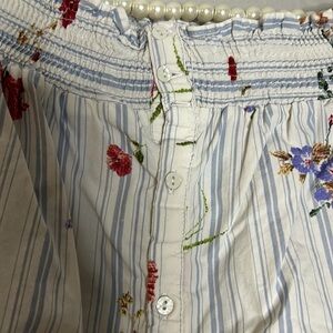 Zara women’s large garden floral stripe smocked romantic off the shoulder large