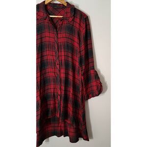 Zara womens medium shirt dress red plaid baloon sleeve peasant boho beach flowy