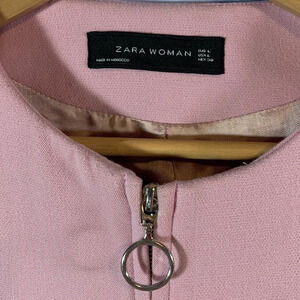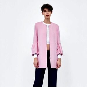Zara womens size XL pink zip jacket coat ruffle cuff sleeve chic pockets