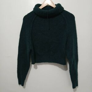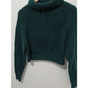 Zara womens small dark hunter green teal raglan cropped sweater wool alpaca soft