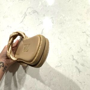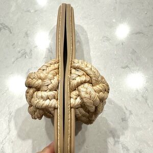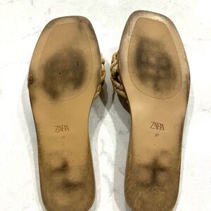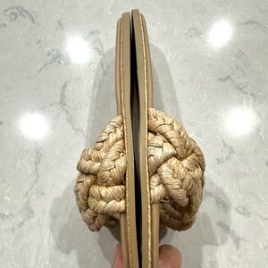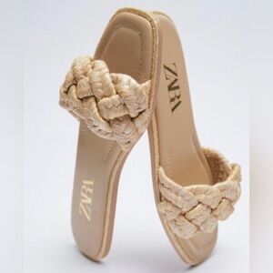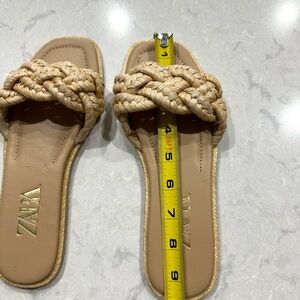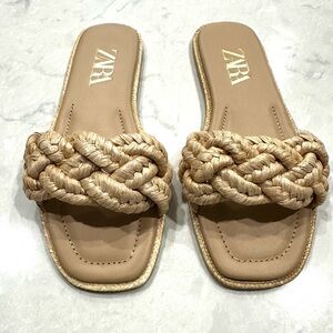 Zara women’s tan woven raffia flat sandals / slides size 37