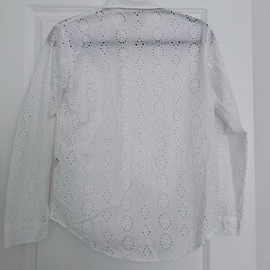 Elevate your style with this classic white eyelet shirt. Perfect for any occasion, this shirt offers a blend of comfort and elegance.